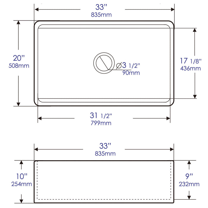 ALFI Brand ABFS3320S-GM Kitchen Sink Specifications