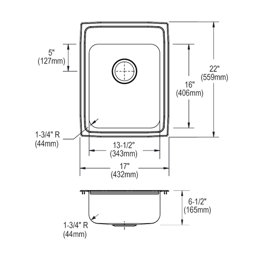 ElkayElkay LRAD1722652 Lustertone Technical Specifications Material Stainless Steel Installation Type Drop-in Gauge 18 Sound Deadening Botto...