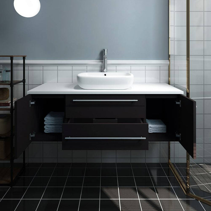 Fresca FCB6148ES-VSL-CWH-V Lucera 48" Espresso Wall Hung Modern Bathroom Cabinet with Top & Vessel Sink