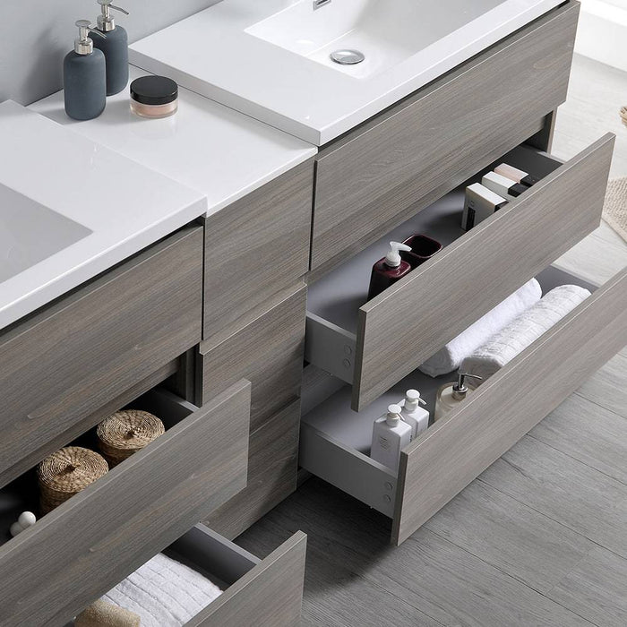 Fresca FVN93-361236MGO-D Lazzaro 84" Gray Wood Free Standing Double Sink Modern Bathroom Vanity with Medicine Cabinet