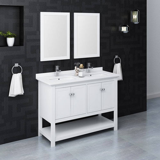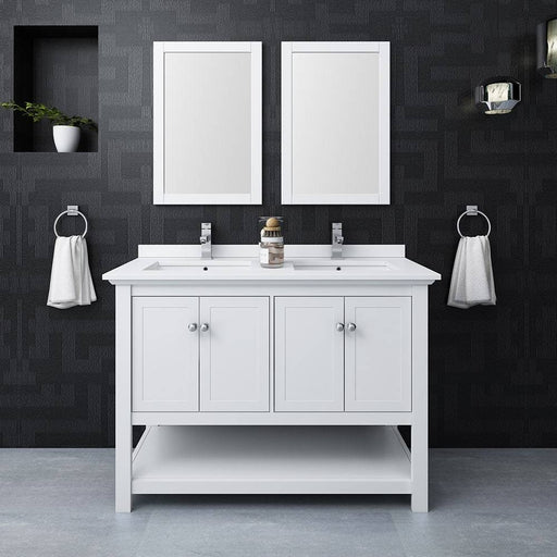 View full detailsFresca FVN2348WH-D Manchester 48" White Traditional Double Sink Bathroom Vanity with Mirrors