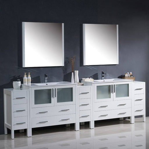 View full detailsFresca FVN62-108WH-UNS Torino 108" White Modern Double Sink Bathroom Vanity with 3 Side Cabinets & Integrated Sinks