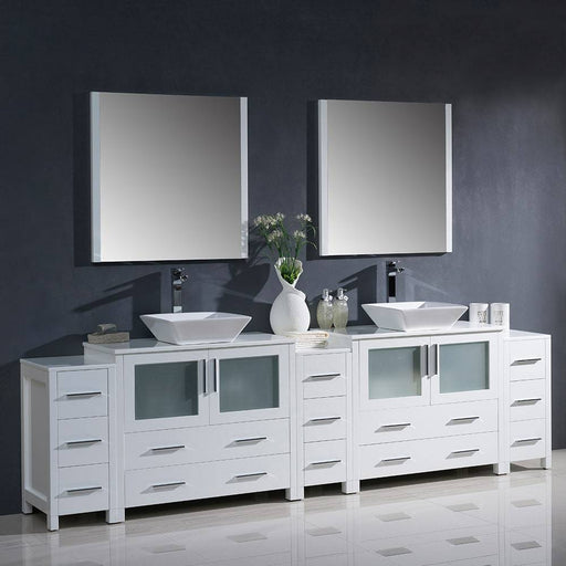 View full detailsFresca FVN62-108WH-VSL Torino 108" White Modern Double Sink Bathroom Vanity with 3 Side Cabinets & Vessel Sinks