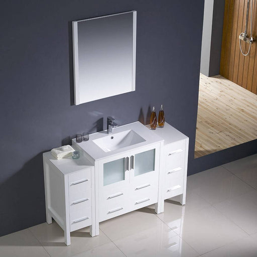 View full detailsFresca FVN62-123012WH-UNS Torino 54" White Modern Bathroom Vanity with 2 Side Cabinets & Integrated Sink