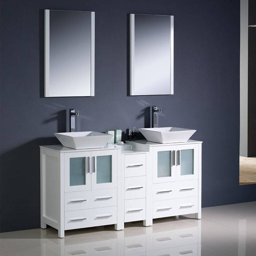 View full detailsFresca FVN62-241224WH-VSL Torino 60" White Modern Double Sink Bathroom Vanity with Side Cabinet & Vessel Sinks