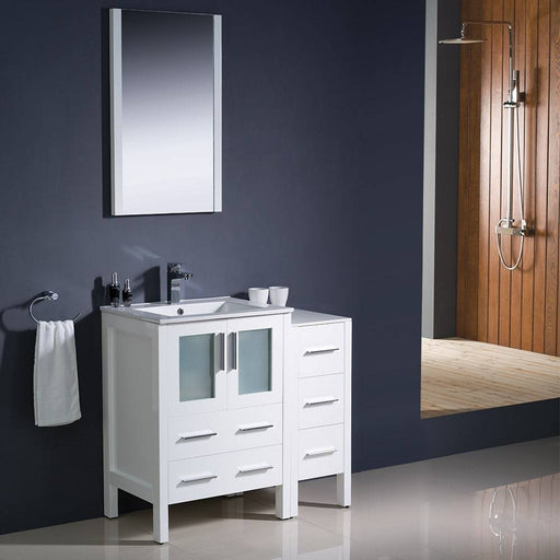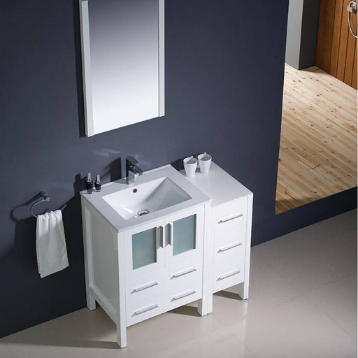 View full detailsFresca FVN62-2412WH-UNS Torino 36" White Modern Bathroom Vanity with Side Cabinet & Integrated Sink