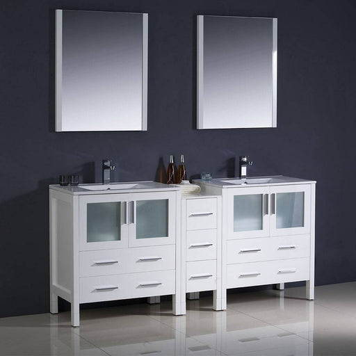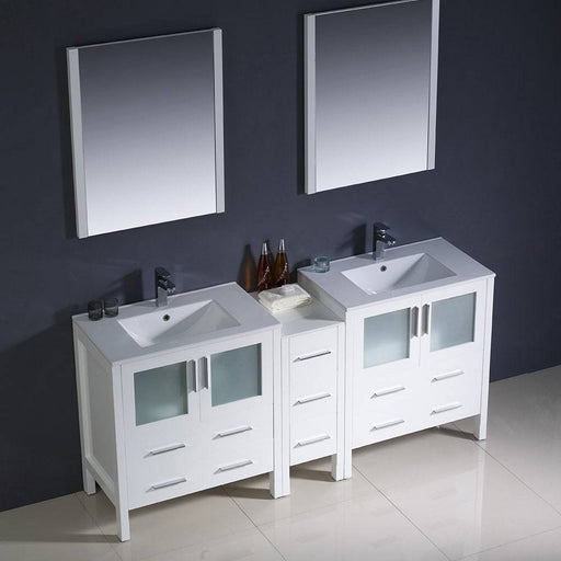 View full detailsFresca FVN62-301230WH-UNS Torino 72" White Modern Double Sink Bathroom Vanity with Side Cabinet & Integrated Sinks
