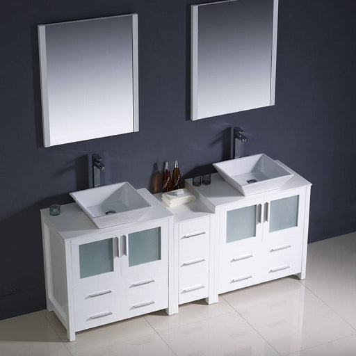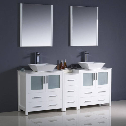 View full detailsFresca FVN62-301230WH-VSL Torino 72" White Modern Double Sink Bathroom Vanity with Side Cabinet & Vessel Sinks