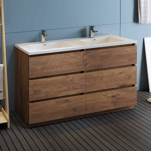 View full detailsFresca FCB93-3030RW-D-I Lazzaro 60" Rosewood Free Standing Modern Bathroom Cabinet with Integrated Double Sink