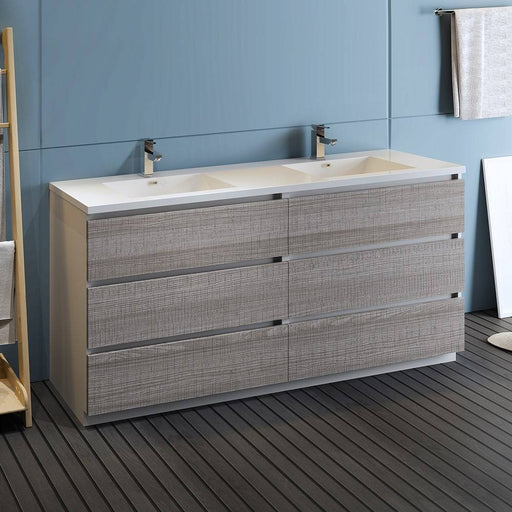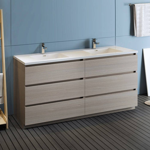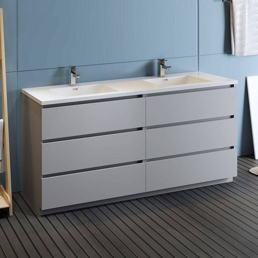 View full detailsFresca FCB93-3030MGO-D-I Lazzaro 60" Gray Wood Free Standing Modern Bathroom Cabinet with Integrated Double Sink