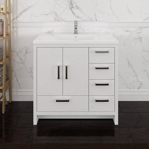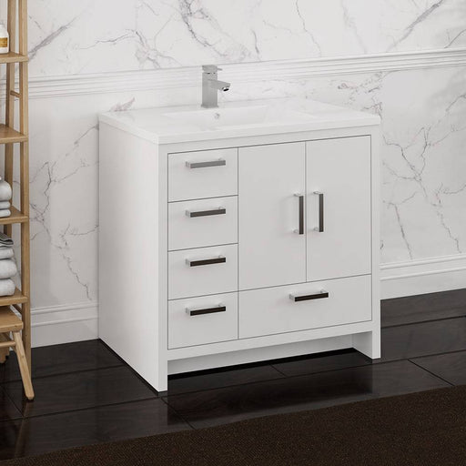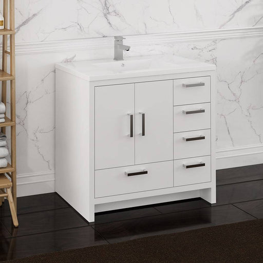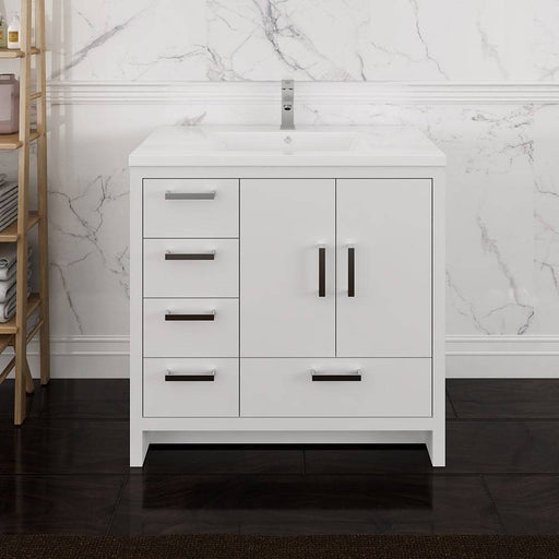 View full detailsFresca FCB9436WH-L-I Imperia 36" Glossy White Free Standing Modern Bathroom Cabinet with Integrated Sink - Left Version