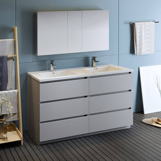 View full detailsFresca FVN93-3030GR-D Lazzaro 60" Gray Free Standing Double Sink Modern Bathroom Vanity with Medicine Cabinet