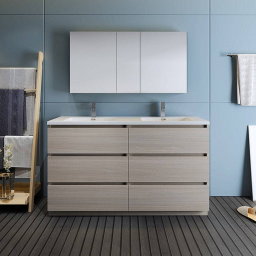 View full detailsFresca FVN93-3030MGO-D Lazzaro 60" Gray Wood Free Standing Double Sink Modern Bathroom Vanity with Medicine Cabinet