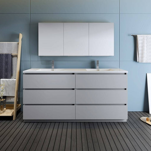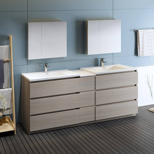 View full detailsFresca FVN93-3636MGO-D Lazzaro 72" Gray Wood Free Standing Double Sink Modern Bathroom Vanity with Medicine Cabinet