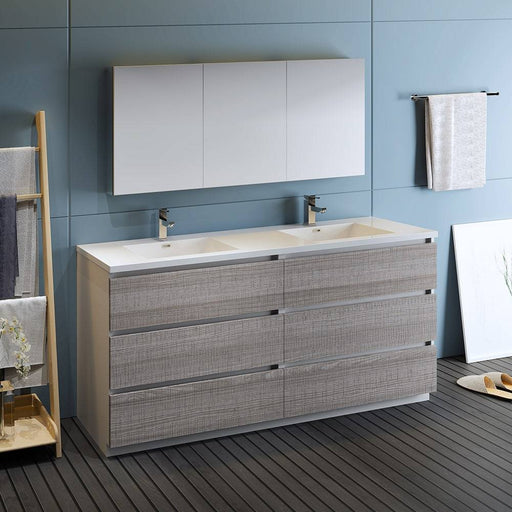 View full detailsFresca FVN93-3636HA-D Lazzaro 72" Ash Gray Free Standing Double Sink Modern Bathroom Vanity with Medicine Cabinet