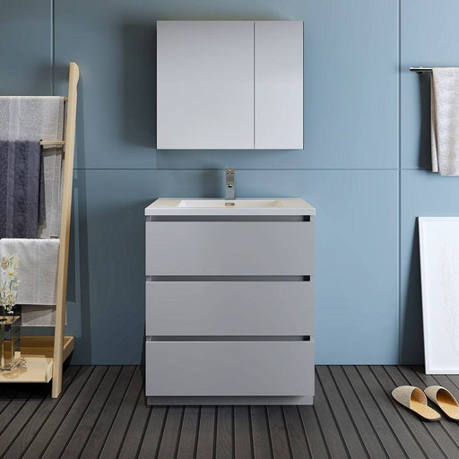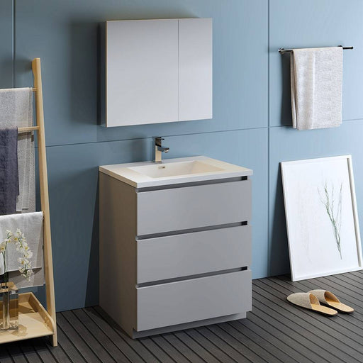 View full detailsFresca FVN9330GR Lazzaro 30" Gray Free Standing Modern Bathroom Vanity with Medicine Cabinet