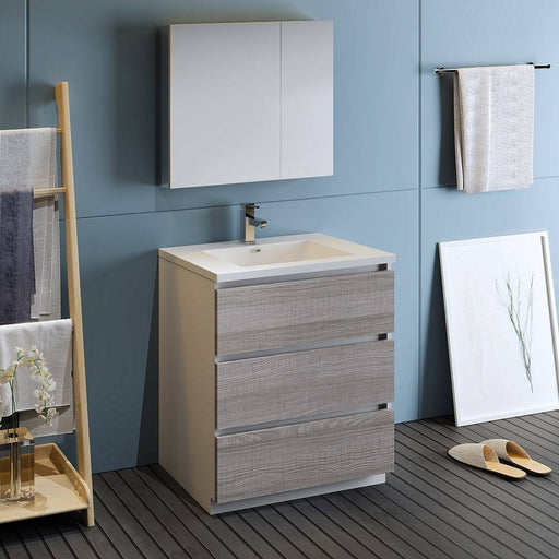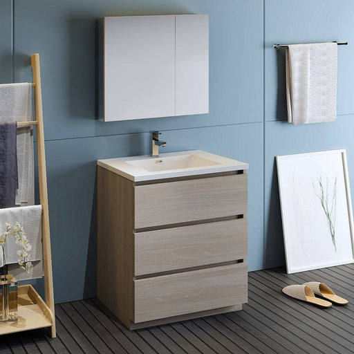 View full detailsFresca FVN9330HA Lazzaro 30" Ash Gray Free Standing Modern Bathroom Vanity with Medicine Cabinet