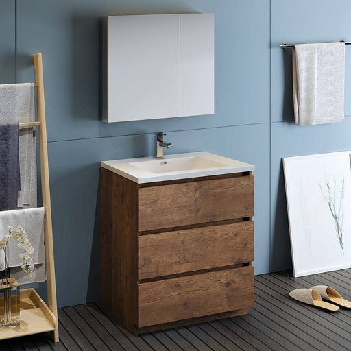 View full detailsFresca FVN9330RW Lazzaro 30" Rosewood Free Standing Modern Bathroom Vanity with Medicine Cabinet