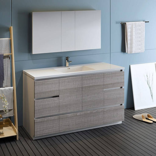 View full detailsFresca FVN9360HA-S Lazzaro 60" Ash Gray Free Standing Single Sink Modern Bathroom Vanity with Medicine Cabinet