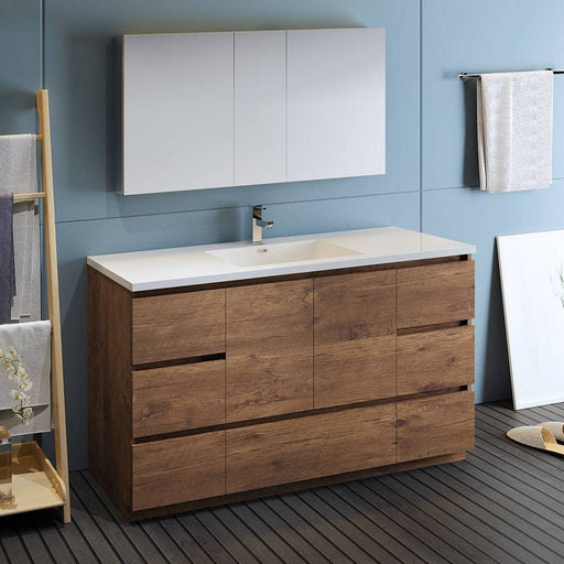 View full detailsFresca FVN9360RW-S Lazzaro 60" Rosewood Free Standing Single Sink Modern Bathroom Vanity with Medicine Cabinet
