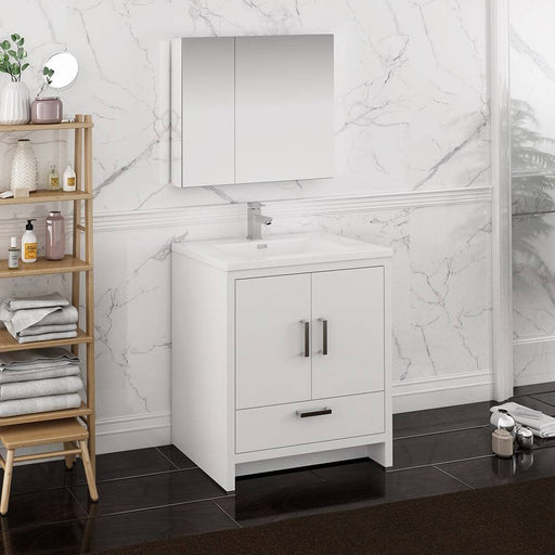 View full detailsFresca FVN9430WH Imperia 30" Glossy White Free Standing Modern Bathroom Vanity with Medicine Cabinet