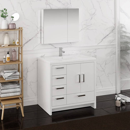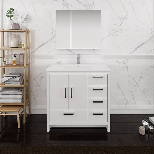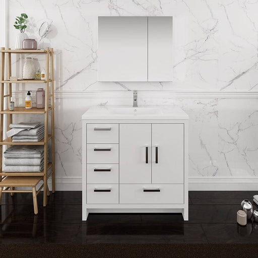 View full detailsFresca FVN9436WH-L Imperia 36" Glossy White Free Standing Modern Bathroom Vanity with Medicine Cabinet- Left Version