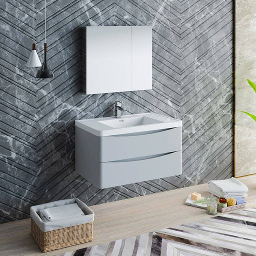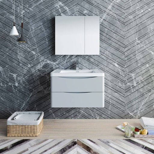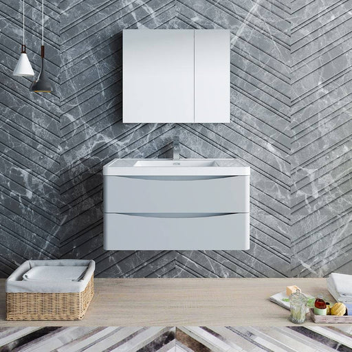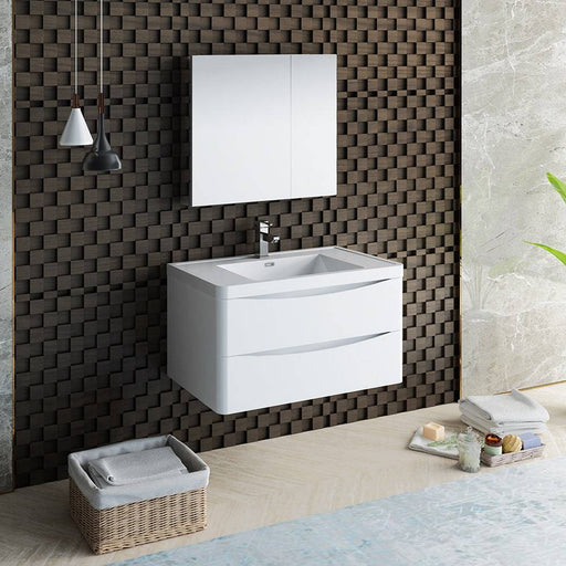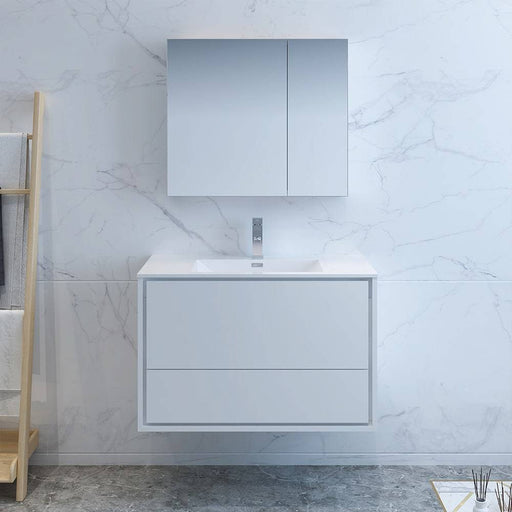 View full detailsFresca FVN9236WH Catania 36" Glossy White Wall Hung Modern Bathroom Vanity with Medicine Cabinet