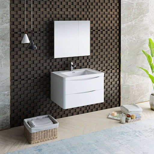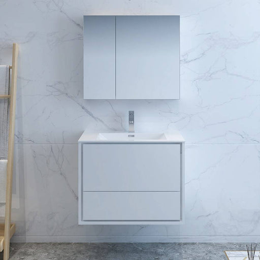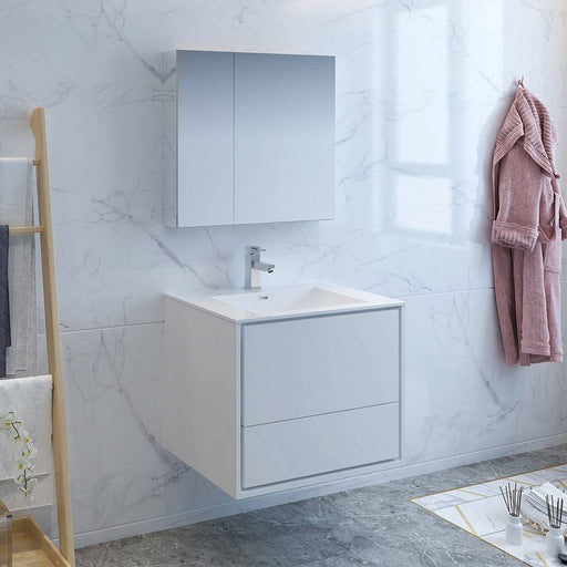 View full detailsFresca FVN9230WH Catania 30" Glossy White Wall Hung Modern Bathroom Vanity with Medicine Cabinet