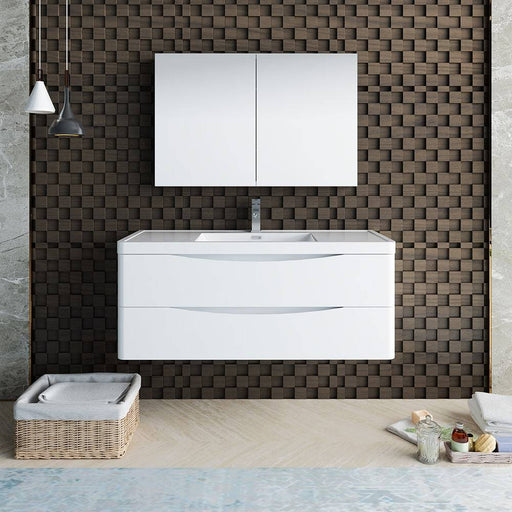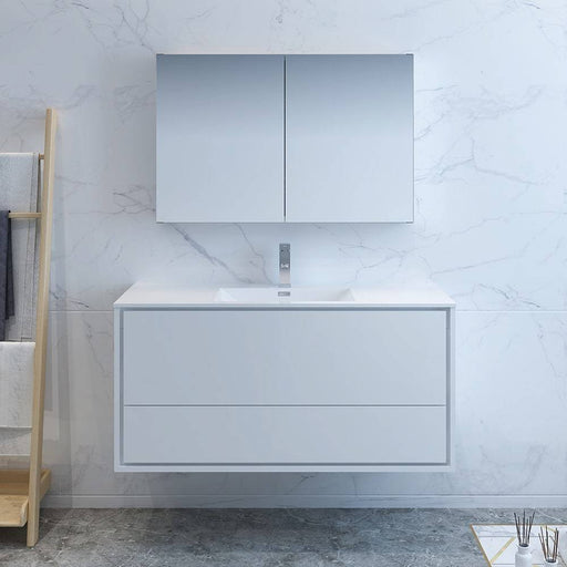 View full detailsFresca FVN9248WH Catania 48" Glossy White Wall Hung Modern Bathroom Vanity with Medicine Cabinet