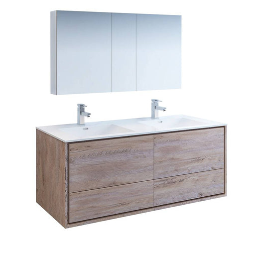 View full detailsFresca FVN9260RNW-D Catania 60" Rustic Natural Wood Wall Hung Double Sink Modern Bathroom Vanity with Medicine Cabinet