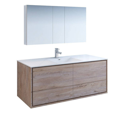 View full detailsFresca FVN9260RNW-S Catania 60" Rustic Natural Wood Wall Hung Single Sink Modern Bathroom Vanity with Medicine Cabinet