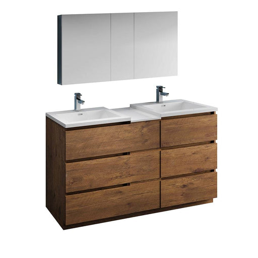View full detailsFresca FVN93-241224RW-D Lazzaro 60" Rosewood Free Standing Double Sink Modern Bathroom Vanity with Medicine Cabinet