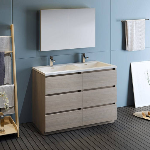 View full detailsFresca FVN93-2424MGO-D Lazzaro 48" Gray Wood Free Standing Double Sink Modern Bathroom Vanity with Medicine Cabinet