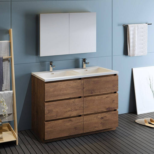 View full detailsFresca FVN93-2424RW-D Lazzaro 48" Rosewood Free Standing Double Sink Modern Bathroom Vanity with Medicine Cabinet
