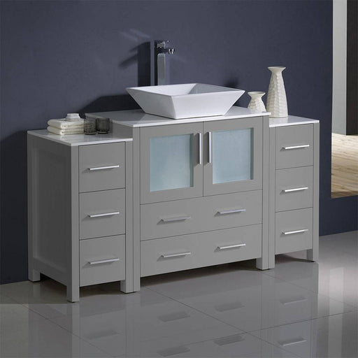 Fresca FCB62-123012GR-CWH-V Torino 54" Grey Modern Bathroom Cabinets with Top & Vessel Sink