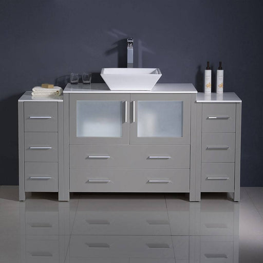 Fresca FCB62-123612GR-CWH-V Torino 60" Grey Modern Bathroom Cabinets with Top & Vessel Sink