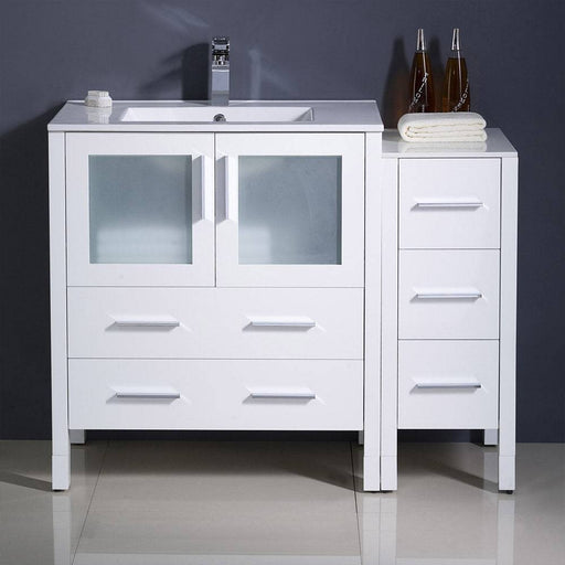 Fresca FCB62-3012WH-I Torino 42" White Modern Bathroom Cabinets with Tops & Integrated Sink