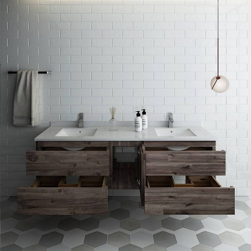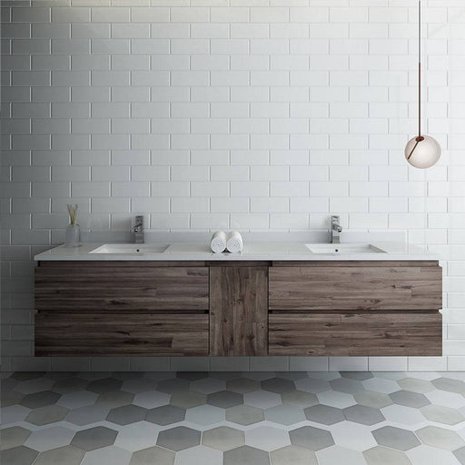 View full detailsFresca FCB31-301230ACA-CWH-U Formosa 72" Wall Hung Double Sink Modern Bathroom Cabinet with Top & Sinks in Acacia