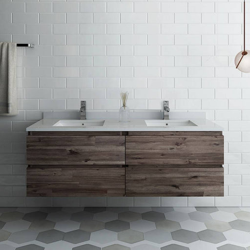 FrescaThe Fresca Formosa 60" Wall Hung Double Sink Modern Bathroom Cabinet with Top & Sinks is superbly crafted of solid Acacia wood, known for its m...