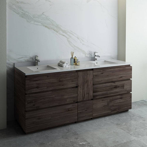 View full detailsFresca FCB31-3636ACA-FC-CWH-U Formosa 72" Floor Standing Double Sink Modern Bathroom Cabinet with Top & Sinks in Acacia