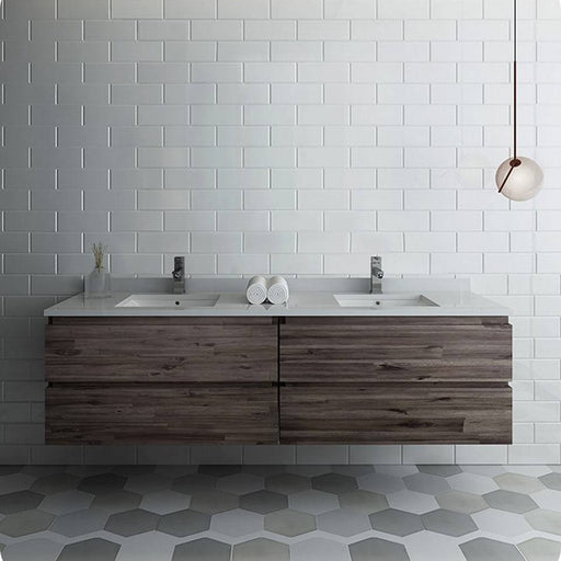View full detailsFresca FCB31-3636ACA-CWH-U Formosa 72" Wall Hung Double Sink Modern Bathroom Cabinet with Top & Sinks in Acacia