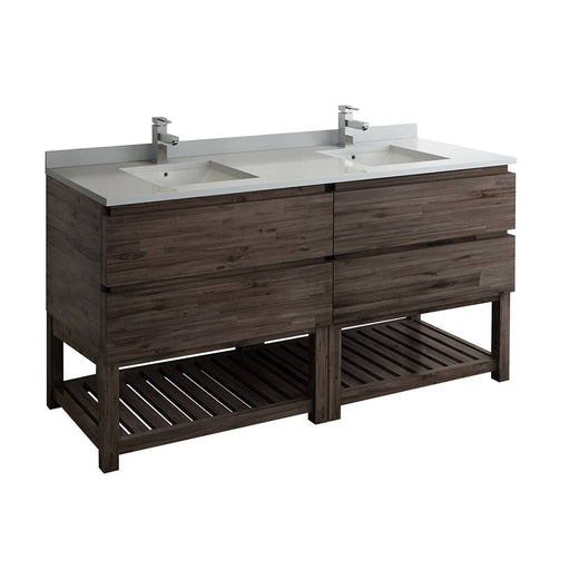 FrescaThe Fresca Formosa 60" Floor Standing Open Bottom Double Sink Modern Bathroom Cabinet with Top & Sinks is superbly crafted of solid Acacia wood...