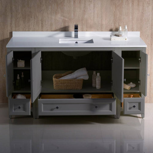View full detailsFresca FCB20-123612GR-CWH-U Oxford 60" Gray Traditional Bathroom Cabinets with Top & Sink