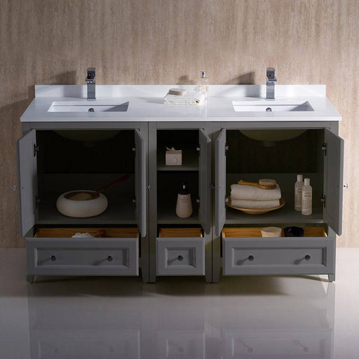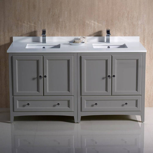 View full detailsFresca FCB20-3030GR-CWH-U Oxford 60" Gray Traditional Double Sink Bathroom Cabinets with Top & Sinks