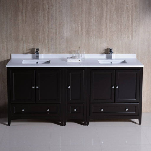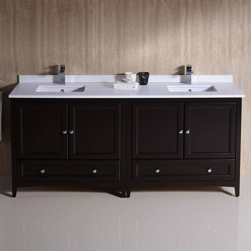 View full detailsFresca FCB20-301230ES-CWH-U Oxford 72" Espresso Traditional Double Sink Bathroom Cabinets with Top & Sinks