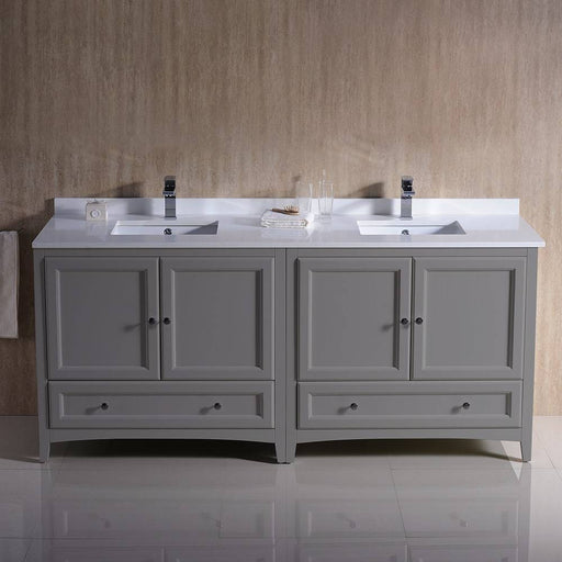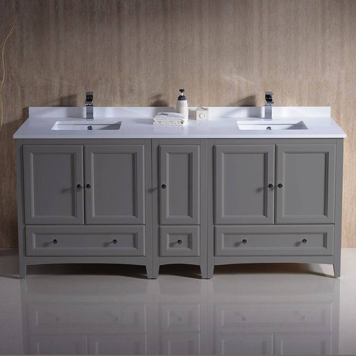 View full detailsFresca FCB20-301230GR-CWH-U Oxford 72" Gray Traditional Double Sink Bathroom Cabinets with Top & Sinks