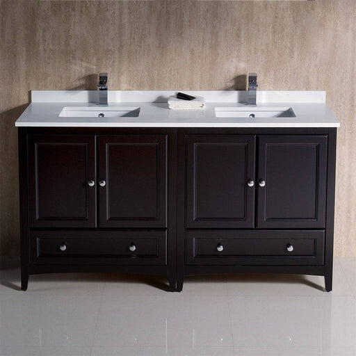View full detailsFresca FCB20-241224ES-CWH-U Oxford 60" Espresso Traditional Double Sink Bathroom Cabinets with Top & Sinks