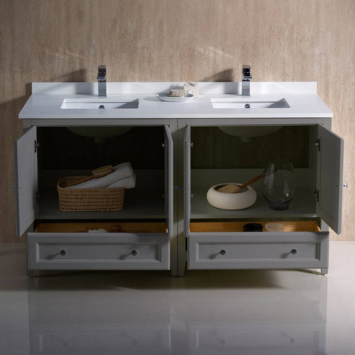 View full detailsFresca FCB20-241224GR-CWH-U Oxford 60" Gray Traditional Double Sink Bathroom Cabinets with Top & Sinks