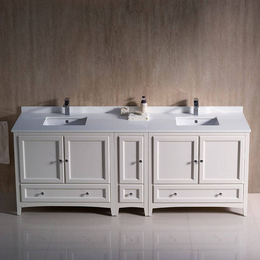 View full detailsFresca FCB20-361236AW-CWH-U Oxford 84" Antique White Traditional Double Sink Bathroom Cabinets with Top & Sinks