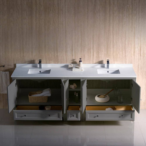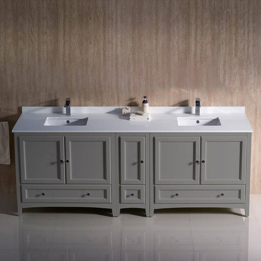 View full detailsFresca FCB20-361236GR-CWH-U Oxford 84" Gray Traditional Double Sink Bathroom Cabinets with Top & Sinks